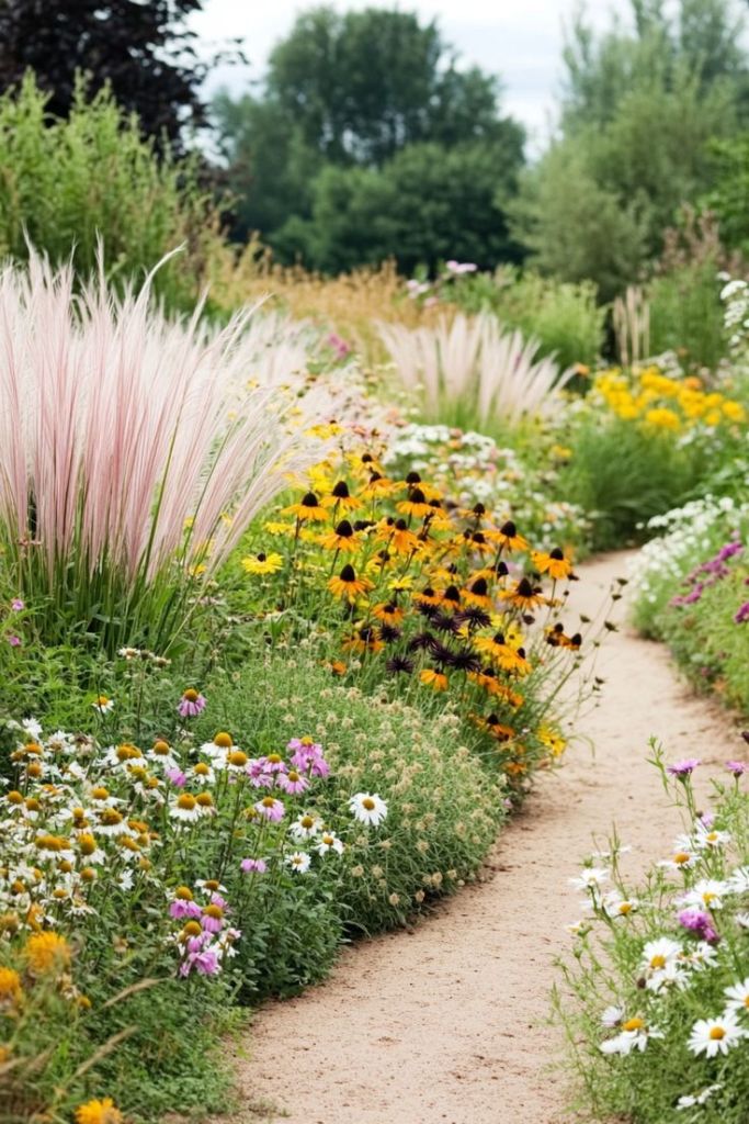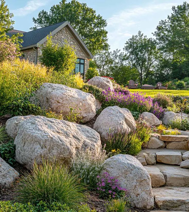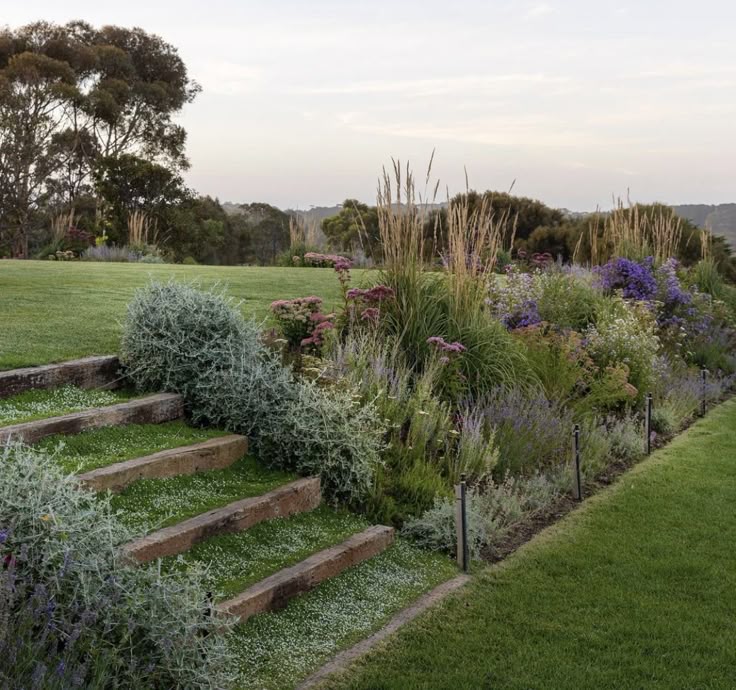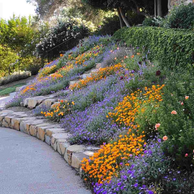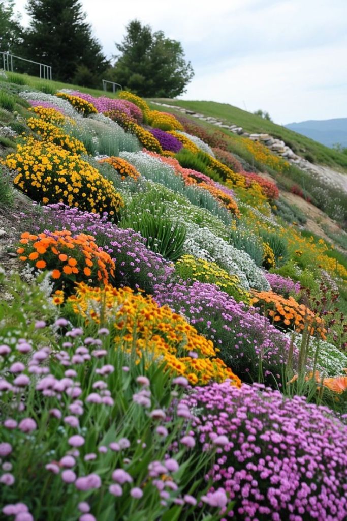 Wildflowers and perennials soften the slope and turn your garden into a dreamy, colorful escape.