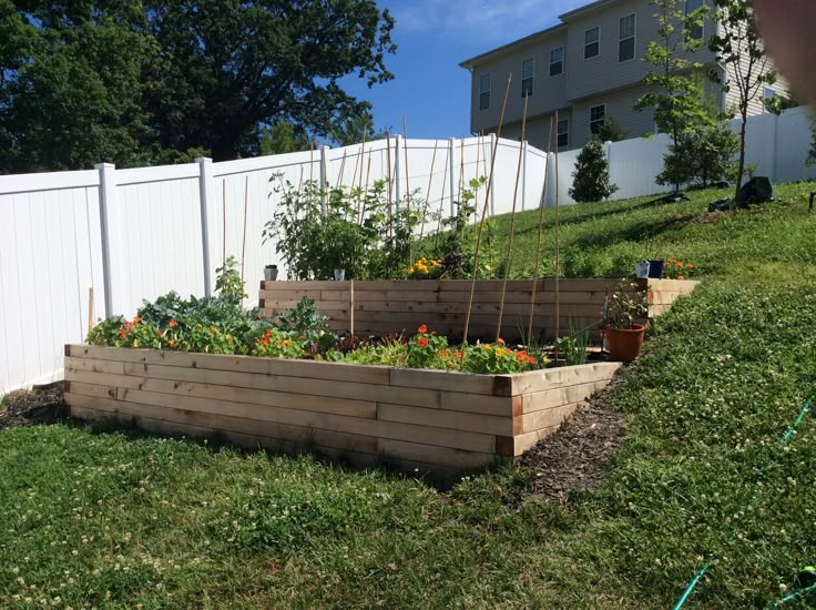 Terraced beds or vertical areas on slopes are perfect for growing your own, even if you’re short on time.