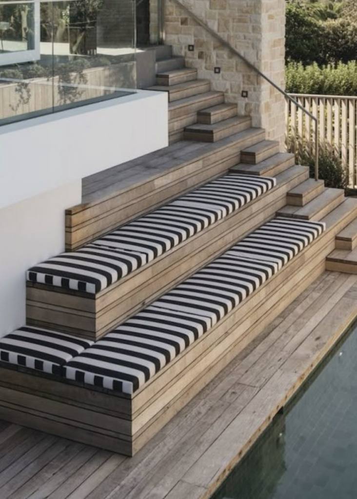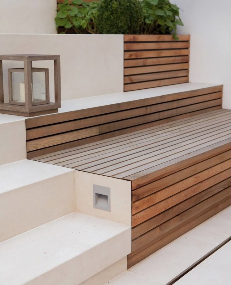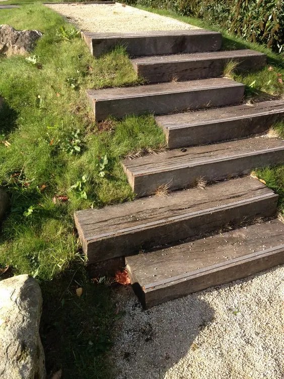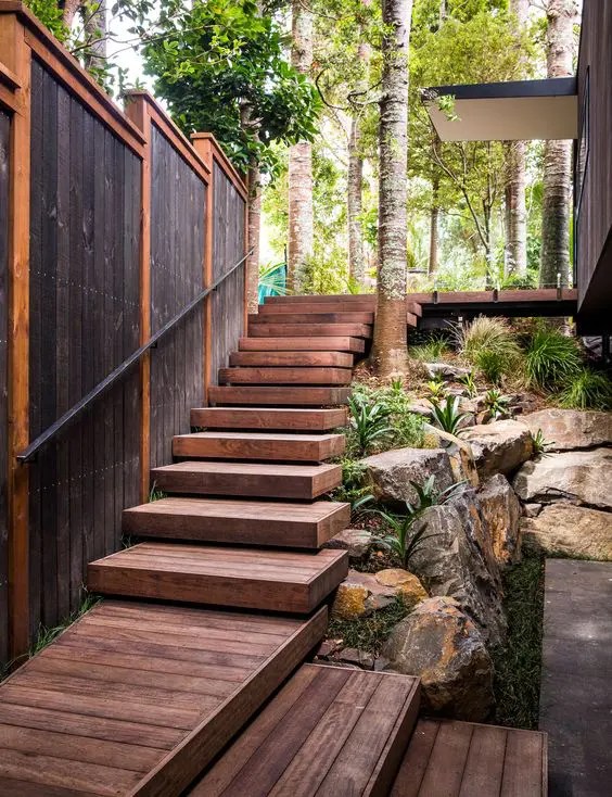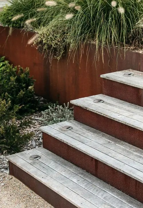 Timber steps. Consider integrated lighting for cozy evening strolls.
