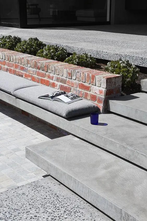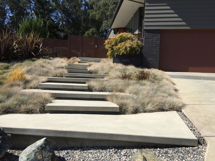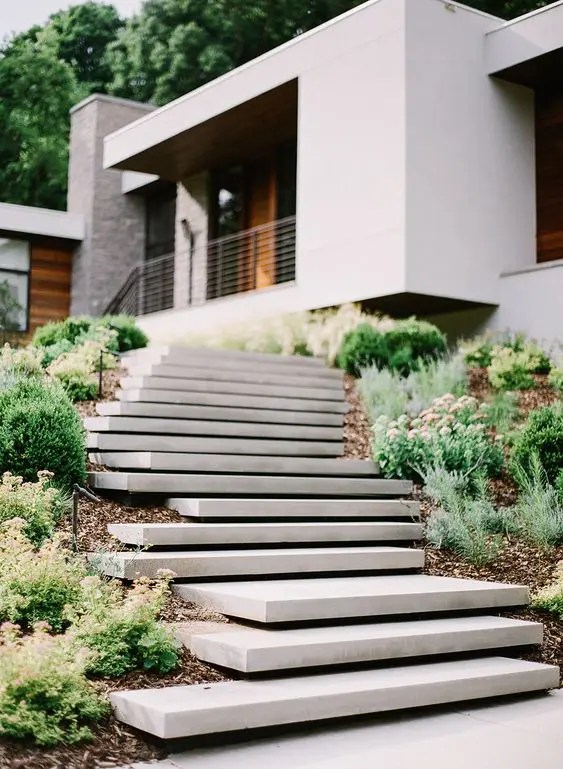 Floating concrete steps for a sleek, minimal look.