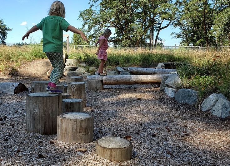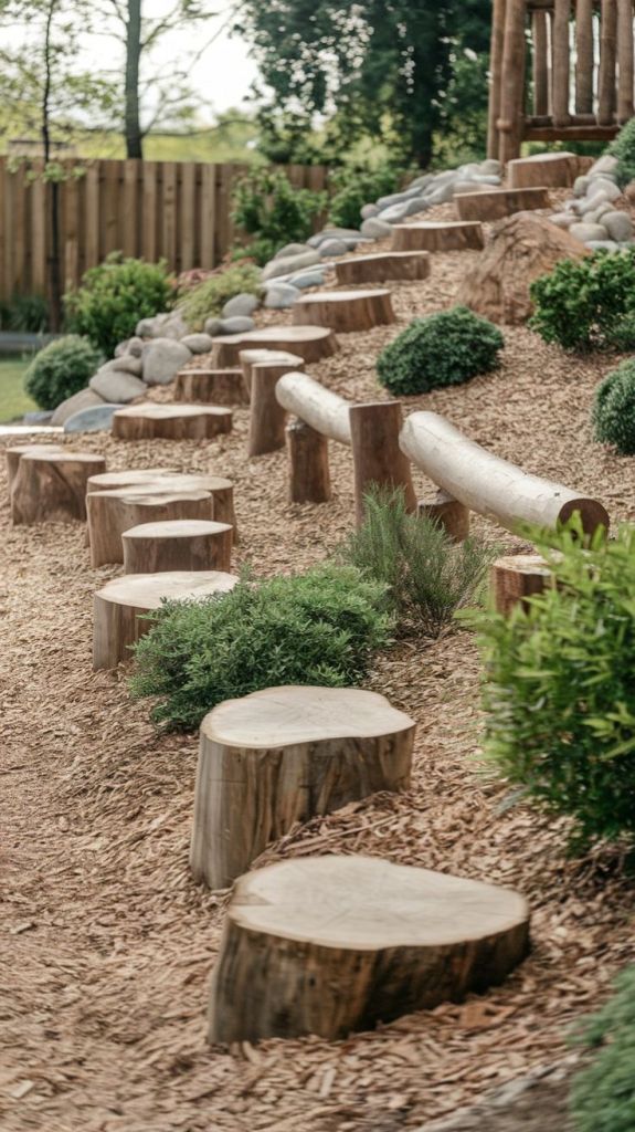 Stepping stones and logs to balance on and explore.