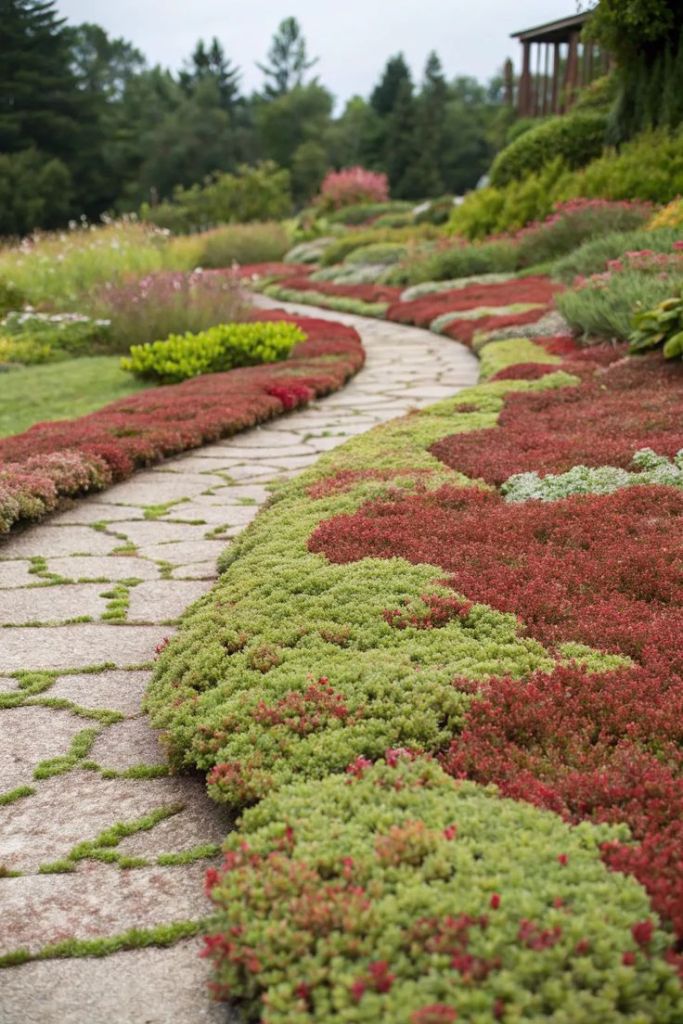 Trailing plants like creeping thyme or sedum.
