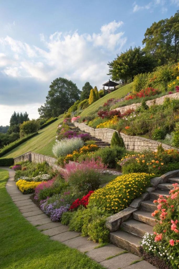 🌸 5. Sloped Gardens in Bloom – Flower Power