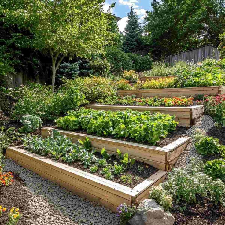 Terraced veggie beds that are both beautiful and productive.
